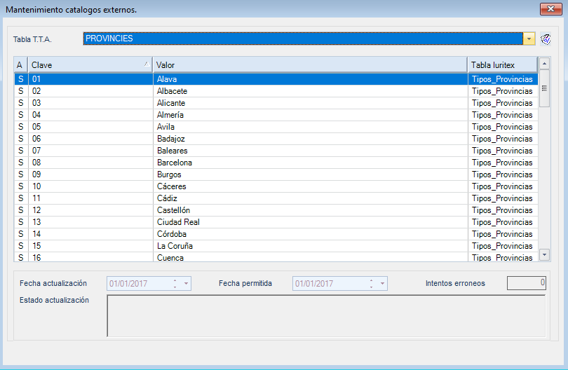 En el campo «Estado actualización», visualizaremos el estado de la actualización de la tabla seleccionada