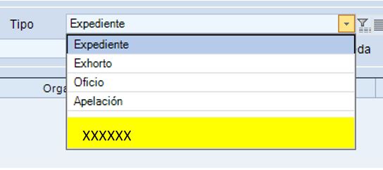 – Seleccionamos tipo de expediente XXXXXX