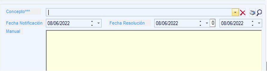 Al notificar, como el expediente se ha añadido con un coordinador (XXXXXX), éste nos impide añadir conceptos de forma manual, solamente podemos anotar conceptos que ya están definidos por el procotolo de XXXXXX
