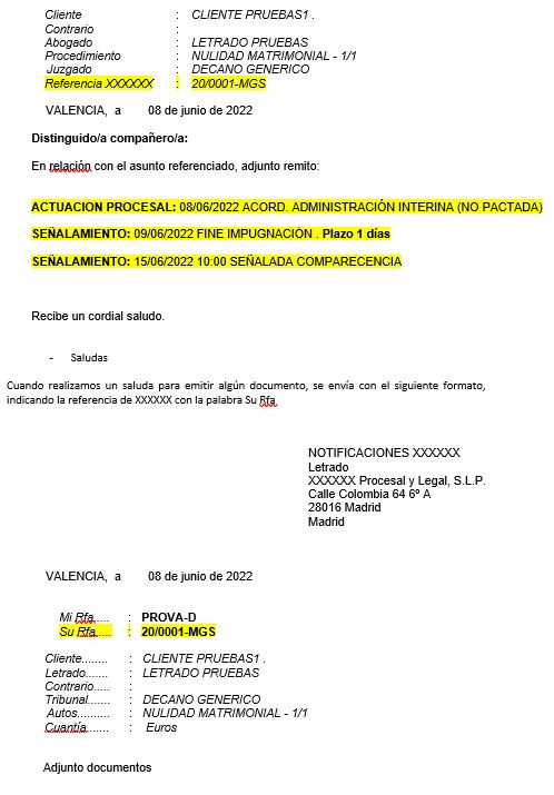 En la ficha del letrado notificaciones XXXXXX hay que indicar que utilice una plantilla de notificaciones específica, para que se envíen con el formato correcto