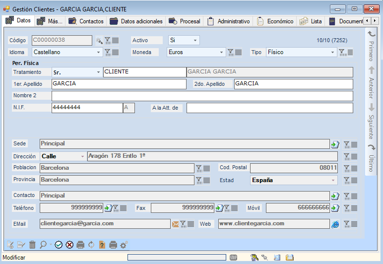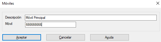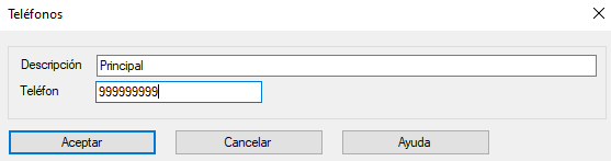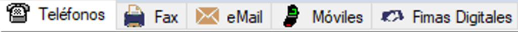 Una vez seleccionado un Contacto podremos gestionar sus datos adicionales: Teléfonos, Fax, eMail y Móviles.