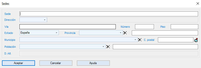 Además podremos gestionar los datos de las Sedes desde las siguientes pestañas:
