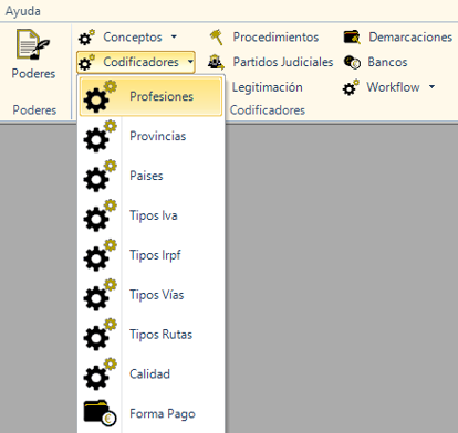 Podremos asignar un código manualmente a cada profesión, mediante los «Codificadores Profesiones». Esto nos será de utilidad para gestionar más fácilmente entradas de datos y búsquedas de las mismas.