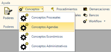 Podremos asignar un código manualmente a cada concepto de agenda, mediante los «Conceptos Agendas». Esto nos será de utilidad para gestionar más fácilmente entradas de datos y búsquedas de las mismas.