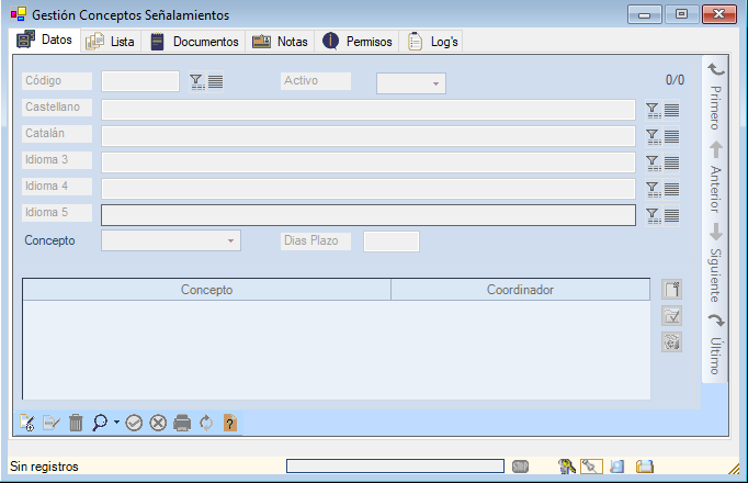 Desde el botón «Alta» situado en la parte inferior izquierda de la ventana, abriremos una nueva ficha de Gestión de «Conceptos Agendas»