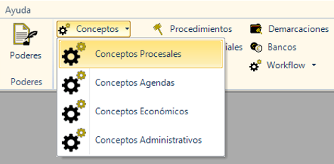 Podremos asignar un código manualmente a cada concepto procesal, mediante los «Conceptos Procesales». Esto nos será de utilidad para gestionar más fácilmente entradas de datos y búsquedas de las mismas.