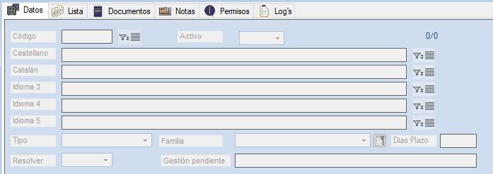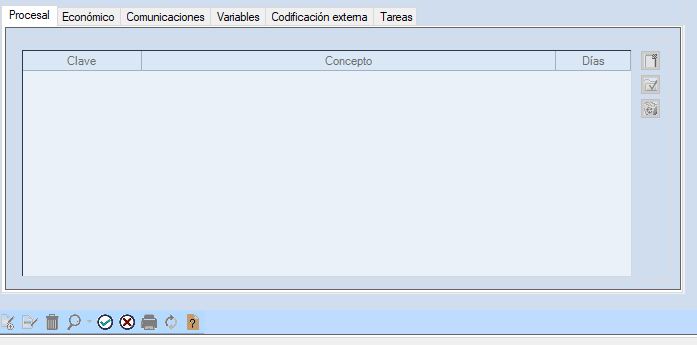 Formulario donde definimos el código del concepto procesal y su denominación. Seguidamente tendremos que definir el tipo de concepto procesal y a qué familia se asigna, los días de plazo de dicho tipo.