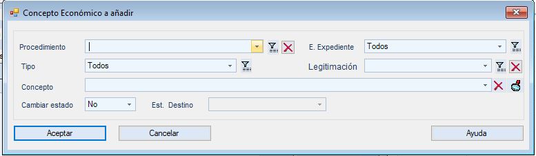 - Concepto: concepto económico a añadir cuando se llegue al estado procesal que estamos definido, en el caso que sea necesario podemos crear un concepto económico exclusivo para esta regla de automatización, para ello debemos ir a principal > conceptos > conceptos económicos (comentar que estos conceptos económicos pueden tener reglas propias de cálculo, que se desencadenan al cargar dicho concepto)