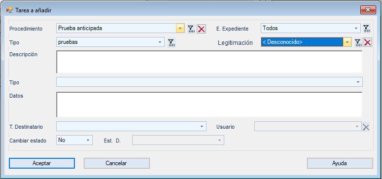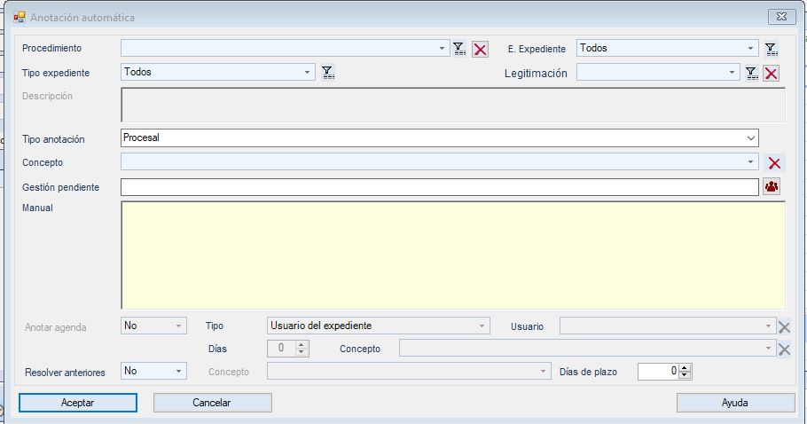 - Tipo anotación: Podemos escoger entre procesal, administrativo o agenda