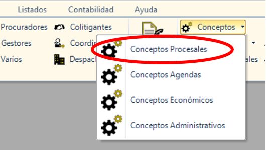 Desde el menú principal; accederemos a Conceptos Procesales