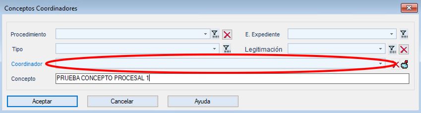 Asociaremos el Concepto Procesal al Coordinador deseado desde el menú desplegable