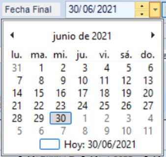 - Por defecto la «Fecha Final» de será la fecha del sistema