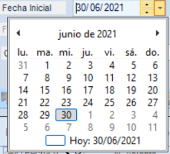 - Por defecto la «Fecha Inicial» de será la fecha del sistema