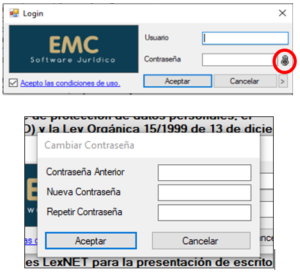 situado en la parte derecha de la casilla «Contraseña» podremos cambiar la contraseña en caso de necesidad de cambio de la misma o de que nuestra «Contraseña» hubiese caducado.