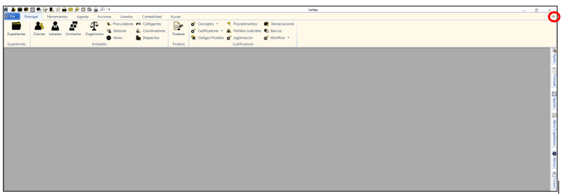 Podemos colapsar la barra de menú principal de Iuritex para ganar espacio visualmente con el botón superior derecho .
