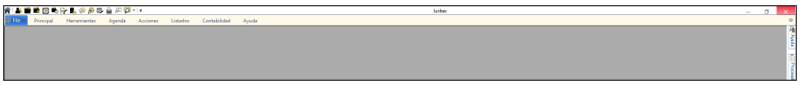 Podemos visualizar las diferentes pestañas; FILE, PRINCIPAL, HERRAMIENTAS, AGENDA, ACCIONES, LISTADOS, CONTABILIDAD y AYUDA.