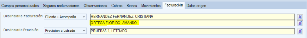 En el segundo campo asignado a «Destinatario Facturación», deberemos, con el botón
