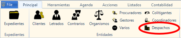 Desde la barra menú Principal, hacer clic en el icono «Despachos» para acceder a la «Gestión Despachos»