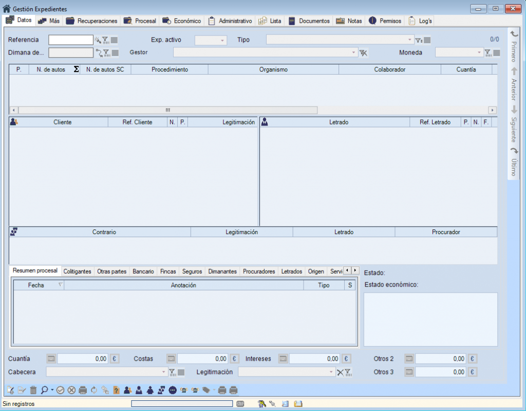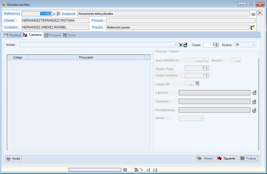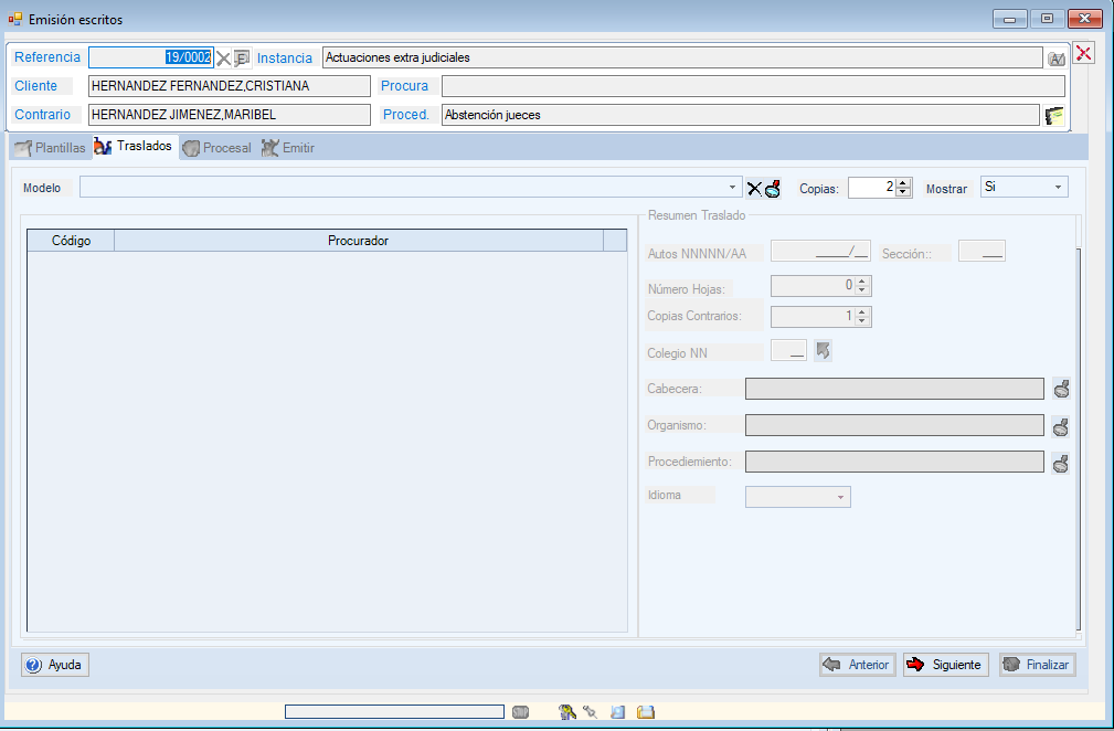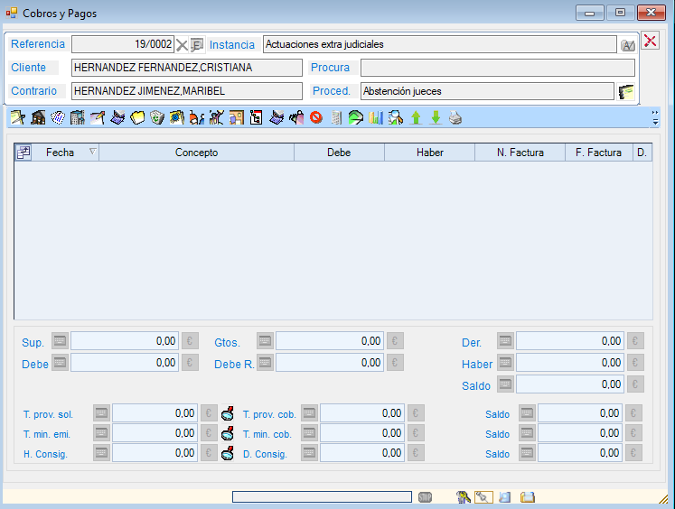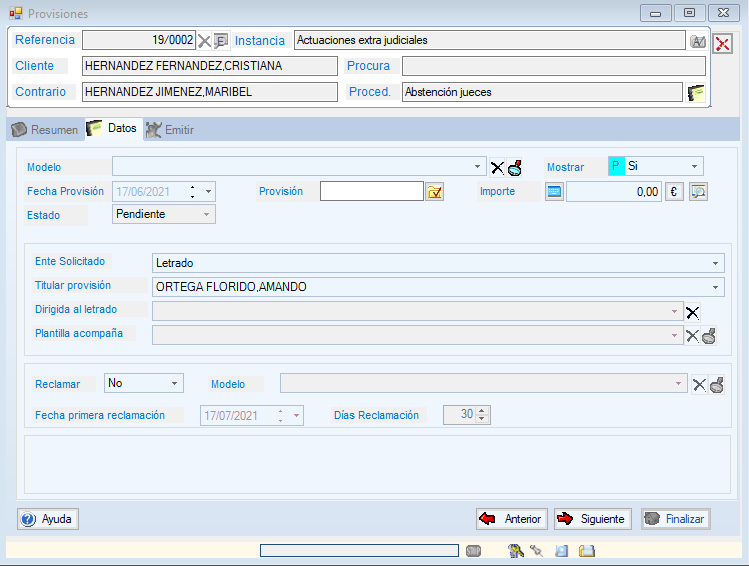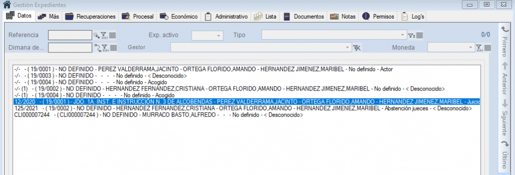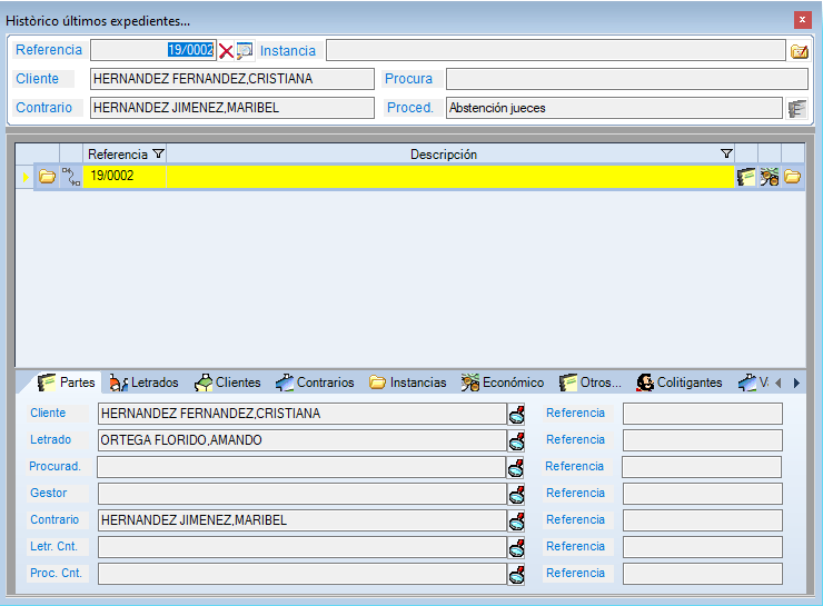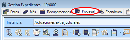 En el campo Proced., visualizaremos el tipo de procedimiento judicial asignado al expediente