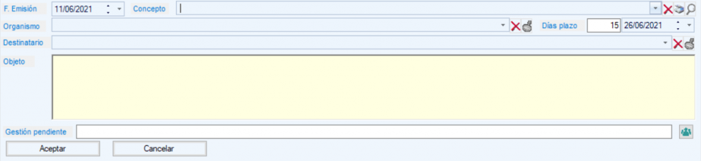 En el campo Objeto podremos anotar texto explicativo sobre la Gestión