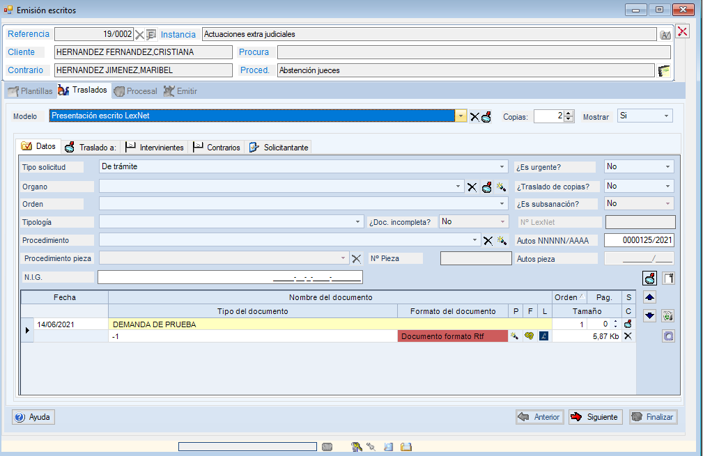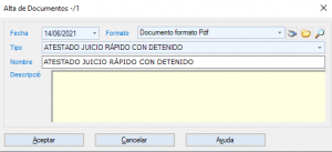 En el campo Tipo, seleccionaremos el tipo de documento que hemos introducido, Escrito o Demanda