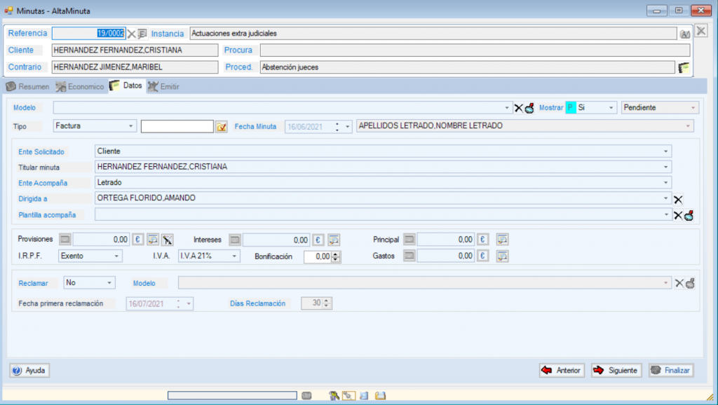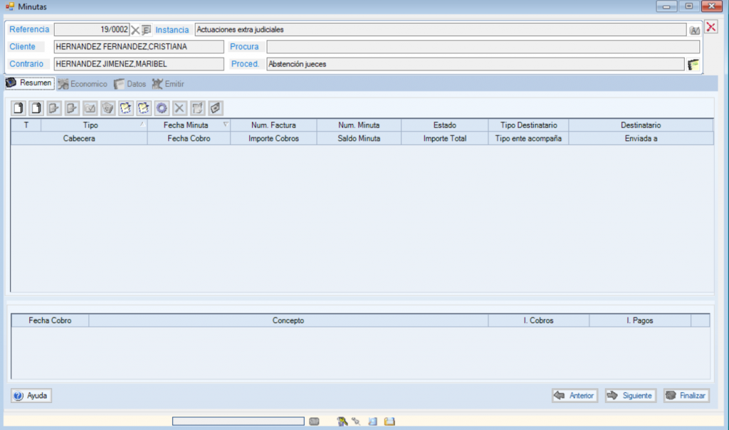 (CTRL + BOTÓN DUPLICA LA MINUTA), accederemos a la siguiente pantalla: