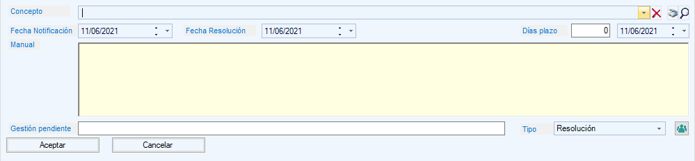 En el campo Manual podremos anotar texto explicativo sobre la Resolución