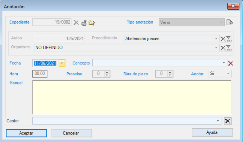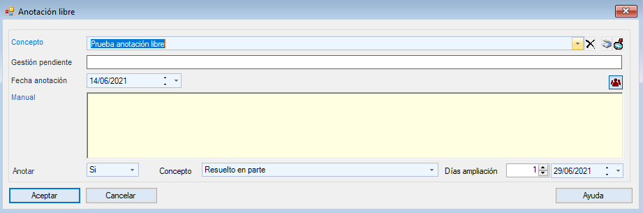 - Por defecto la Fecha Anotaciónde será la fecha del sistema