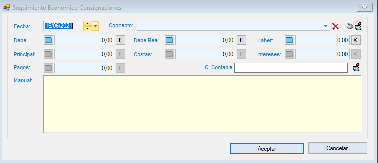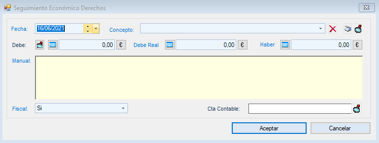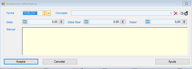 En el campo Fecha visualizaremos la fecha en que realizamos la anotación, que por defecto será la del sistema