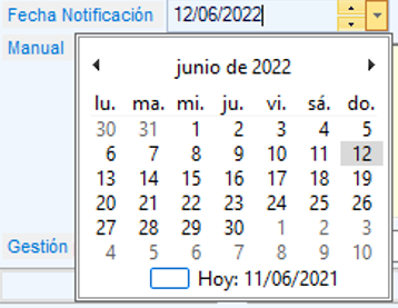 - Podremos modificar la Fecha Notificación manualmente desde el teclado