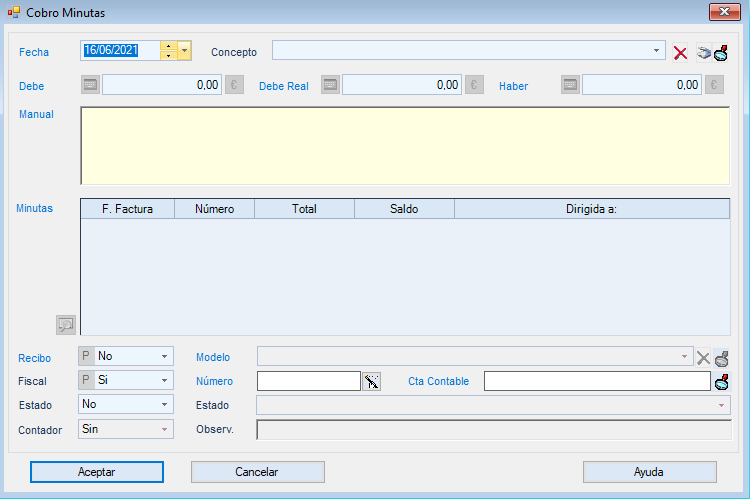 Pulsando el botón Gestión de minutas (MAYÚSCULAS + F1)