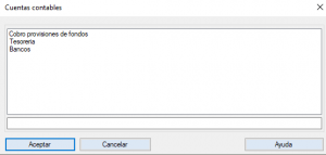 seleccionaremos la cuenta contable deseada desde el siguiente listado: