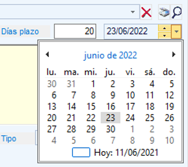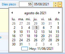 - Podremos modificar los Días plazo manualmente, introduciéndolos desde el teclado