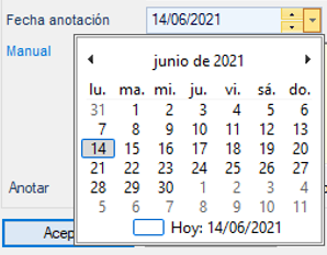- Podremos modificar la Fecha Anotación manualmente desde el teclado