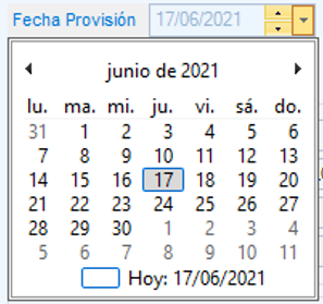 En el campo Fecha Provisión, seleccionaremos la fecha deseada. Por defecto la fecha será la del sistema