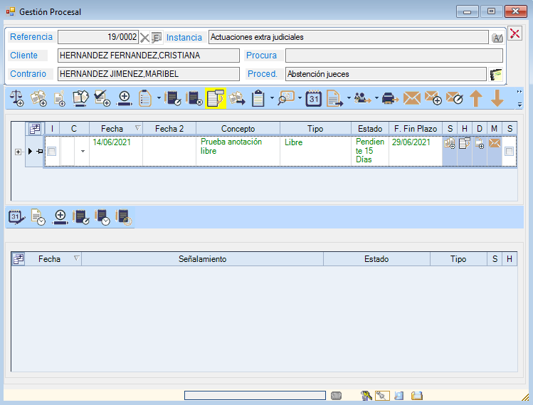 - Realizar anotaciones de plazos que posteriormente visualizaremos en la agenda Procesal
