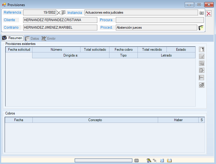 Pulsando el botón Cobro de provisión (CTRL + MAYÚSCULAS + P)