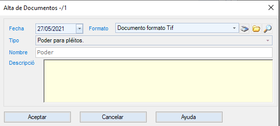 El campo Situación lo utilizaremos para indicar, por ejemplo si el documento que tenemos de poderes es original o copia..
