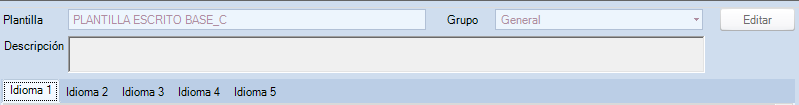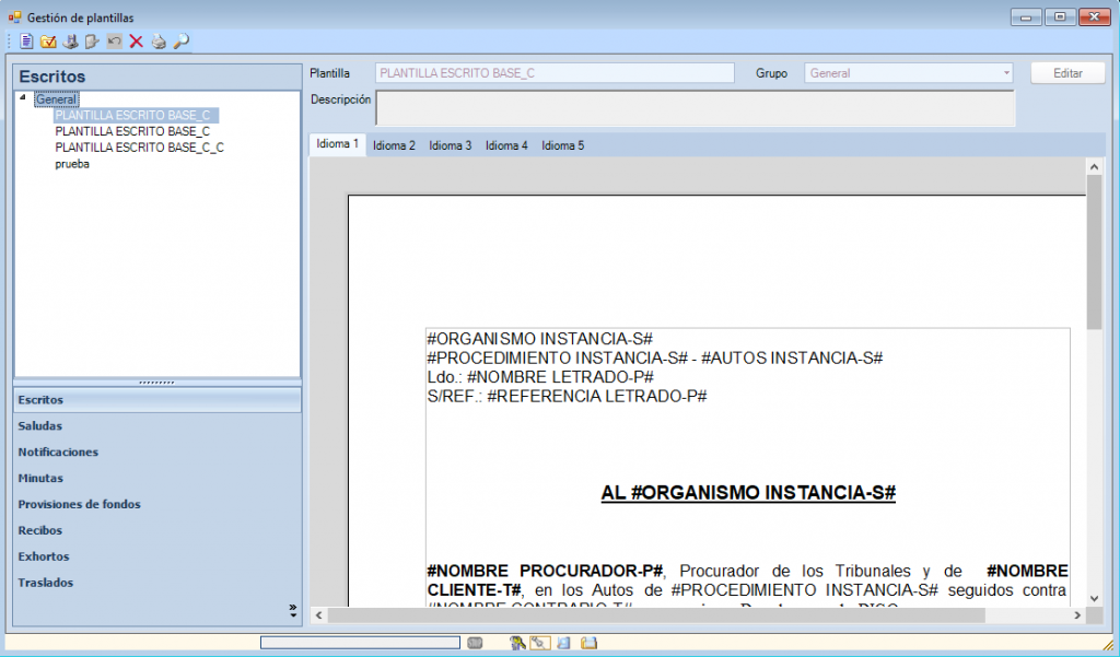 NOTA: IURITEX NOS PERMITE CREAR CADA PLANTILLA HASTA EN CINCO IDIOMAS DIFERENTES.