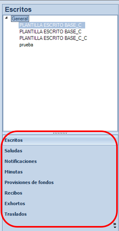 Iuritex dispone de un gestor de plantillas de documentos propio con el que podremos confeccionar plantillas a medida, modificar las ya existentes, clonarlas o eliminarlas para posteriormente utilizarlas como modelos predefinidos en escritos, saludas y facturas por ejemplo.