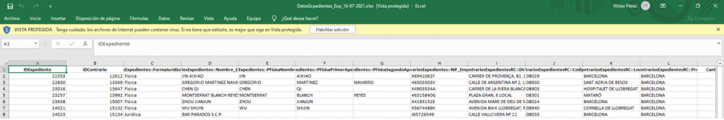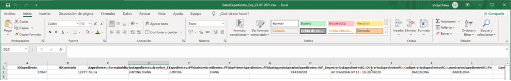 Como se puede comprobar, crea el expediente, con el cliente asociado, el contrario que venía en el Excel, y todos los datos que se han recogido.