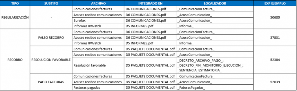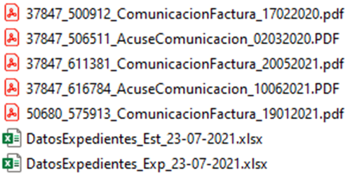 En este caso, como el expediente que hay en los Excel es el 37847, añadirá los documentos que empiezan por ese id. El documento con el nombre «50680_575913_ComunicacionFactura_19012021», no lo añadirá ya que no es del mismo «idExpediente».