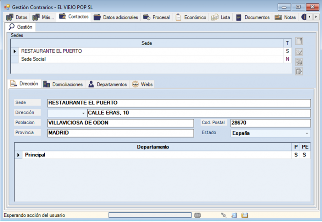 Si se comprueba el contrario, en la parte de contactos se pueden ver las direcciones que tiene. La primera que llega es la principal, y las siguientes en los locales, se añaden como extra, con el nombre de Sede Social