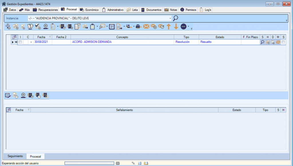 Se puede añadir un concepto. Esta opción creará un concepto procesal, que puede activar el «Workflow» y cambiar el estado del expediente.