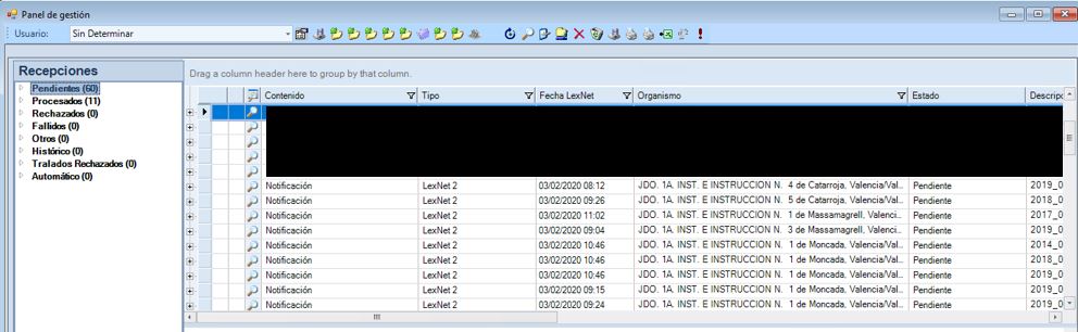 Al igual que con las notificaciones de LexNET, seleccionaremos la notificaciones o traslados correspondientes desde el panel de gestión y lo procesaremos