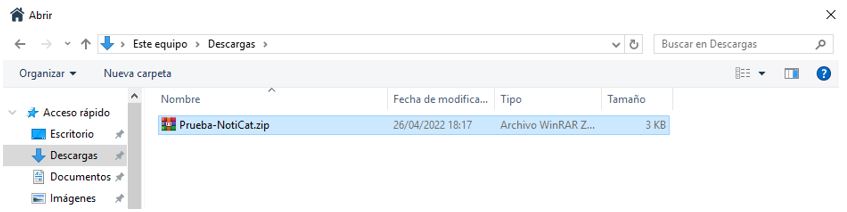 - Descargaremos las notificaciones desde la plataforma de NotiCat en formato ‘zip’ en una carpeta localizada en el PC