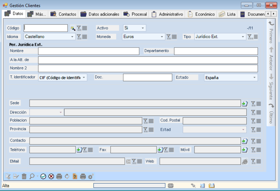 Para dar de alta una ficha de un cliente de tipo Jurídico o Empresa Extranjera en Iuritex, procederemos de la siguiente forma: