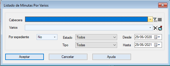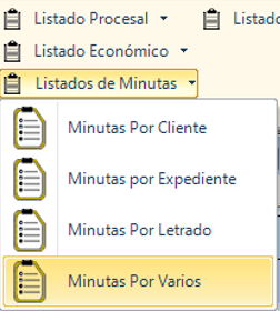 Desde el menú principal, accederemos a «Listados» y seleccionaremos la opción «Listado de Minutas por Varios»