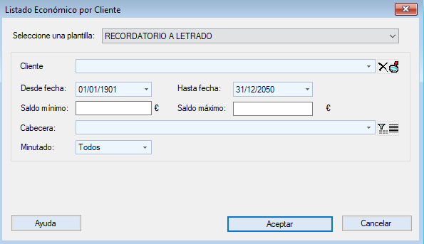 En el campo «Saldo mínimo», indicaremos el saldo mínimo desde el cual queramos hacer el listado