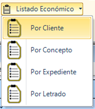 Desde el menú principal, accederemos a «Listados» y seleccionaremos la opción «Listado Económico Por Cliente»